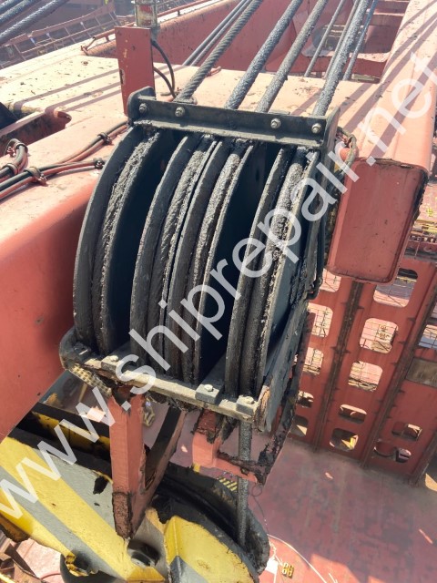 TSR Marine successfully completed the replacement of the worn-out rollers on the cargo cranes of a 23,660 DWT, 1,730 TEU container vessel. The service was carried out for a German management company, ensuring the cranes’ full functionality and safe operation.