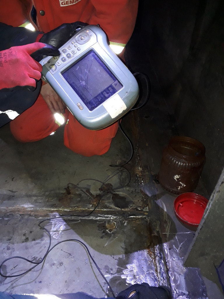 Ultrasonic Test in Cargo Tank at Cruide Oil Tanker